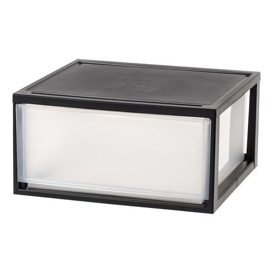 Compact Stacking, Stackable Plastic Drawer Unit, 29.5 Quart, Black, 2 Count