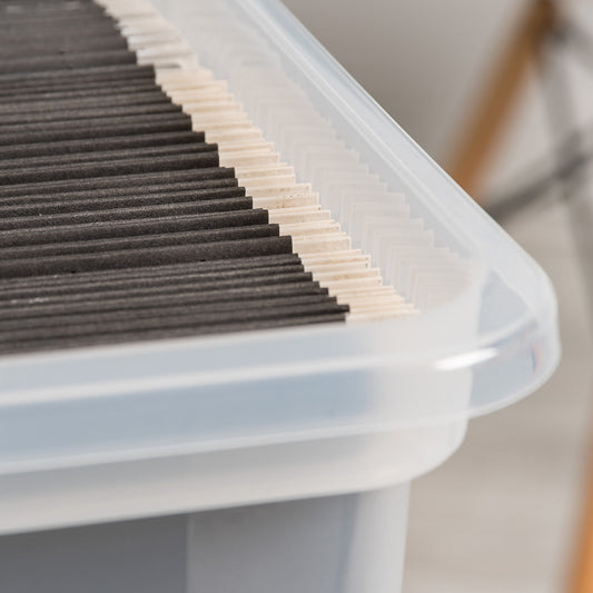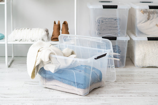 40 Quart Stack & Pull® Box, 6 Pack, Clear with Black Buckle
