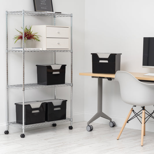 Panier de rangement ouvert, organisateur de fichiers, grand, noir mat, paquet de 4