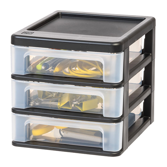 Mini organiseur de bureau à 3 tiroirs, noir, paquet de 2