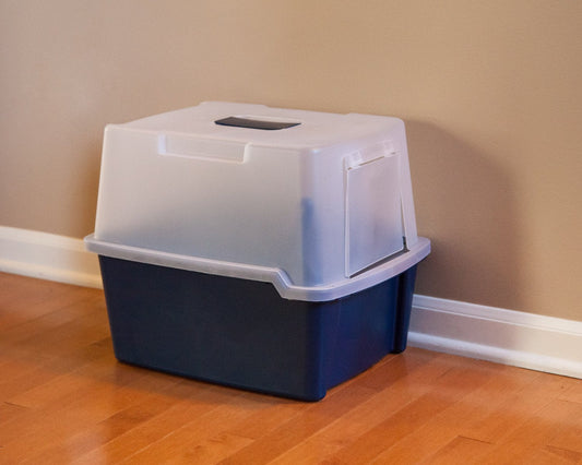 Grand bac à litière d'angle à capuchon avec pelle, bleu marine