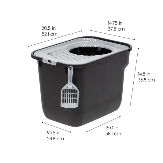 Bac à litière pour chat à entrée supérieure avec pelle, noir