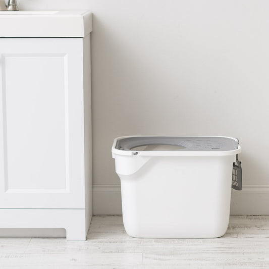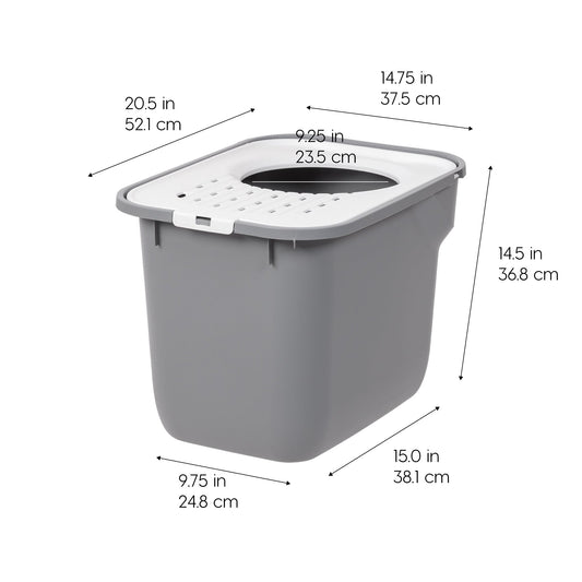 Bac à litière pour chat à entrée supérieure sans pelle, grand, blanc/gris