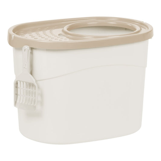 Bac à litière pour chat à entrée supérieure avec pelle, blanc/gris
